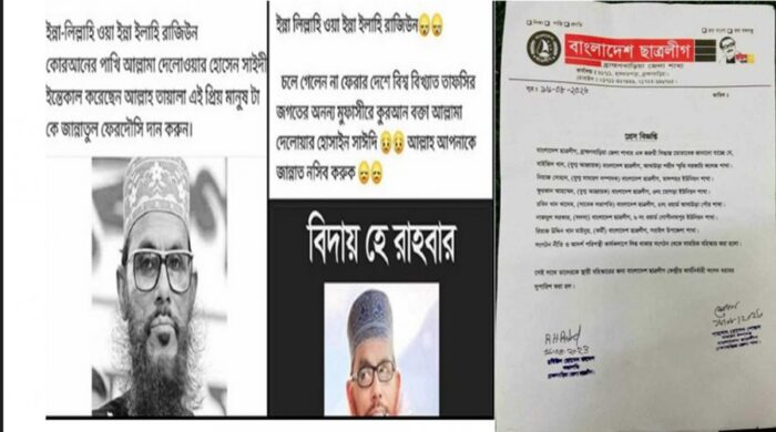 মানবতাবিরোধী অপরাধের দায়ে আমৃত্যু কারাদণ্ডপ্রাপ্ত জামায়াতের নায়েবে আমির দেলাওয়ার হোসাইন সাঈদীর মৃত্যুতে শোকপ্রকাশ ও আক্ষেপ করে ফেসবুকে পোস্ট দেওয়ায় ব্রাহ্মণবাড়িয়া জেলা ছাত্রলীগের বিভিন্ন শাখার ছয় নেতাকর্মীকে সাময়িক বহিষ্কার করা হয়েছে। একইসঙ্গে তাদেরকে সংগঠন থেকে স্থায়ীভাবে বহিষ্কারের জন্য ছাত্রলীগের কেন্দ্রীয় কমিটির কাছে সুপারিশ করা হয়েছে। সংগঠনের আদর্শ পরিপন্থি হওয়ায় এ সিদ্ধান্ত নেওয়া হয়েছে বলে জানিয়েছেন জেলা ছাত্রলীগের নেতারা।